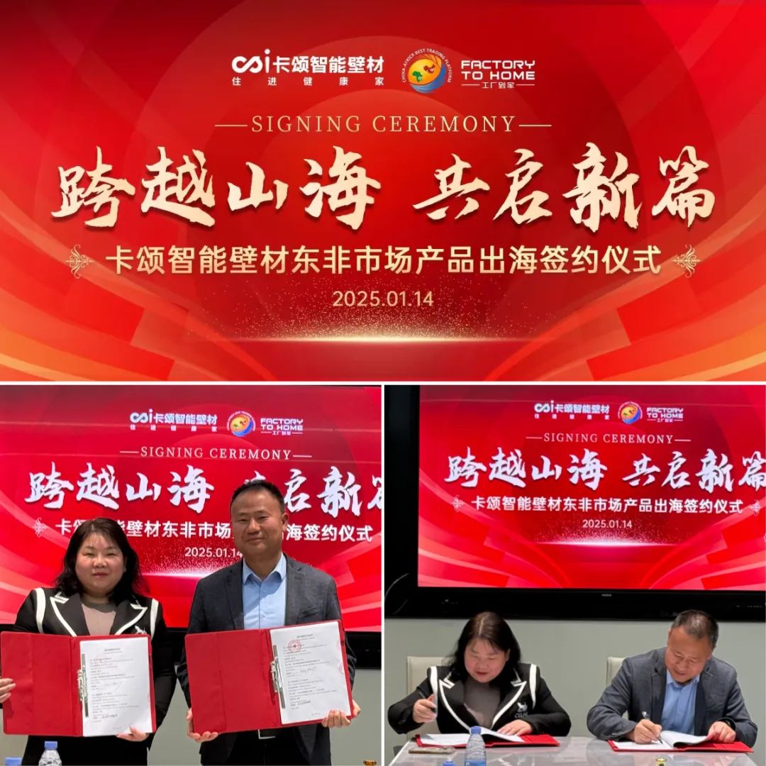 在全球經(jīng)濟一體化的浪潮中,中國品牌正以穩(wěn)健的步伐邁向世界舞臺。近日,卡頌智能壁材憑借卓越的品質(zhì)和創(chuàng)新的技術(shù),成功叩開了坦桑尼亞以及東非市場的大門。卡頌智能壁材東非市場產(chǎn)品出海簽約儀式暨首批產(chǎn)品裝車發(fā)貨,標(biāo)志著卡頌國際化征程邁出了堅實的一步,也預(yù)示著2025年卡頌新材料產(chǎn)品在“跨越山?!钡男抡鞒躺?,必將大展宏圖,大有作為!