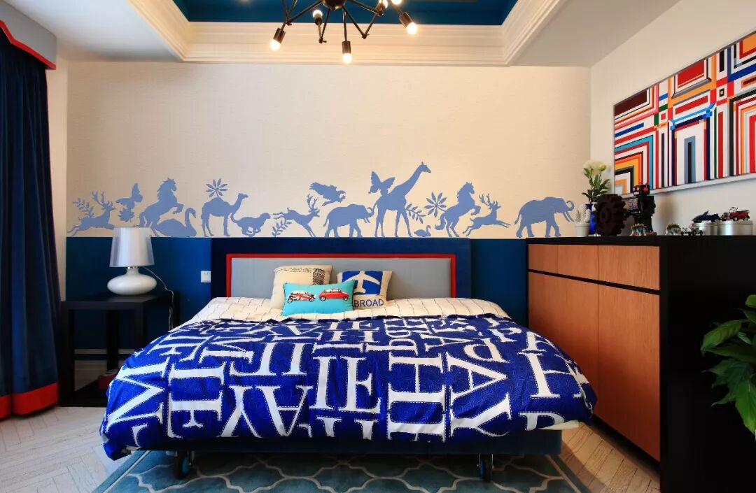 房間色調(diào)豐富,淡雅的色調(diào)能夠為寶寶營造舒適的睡臥環(huán)境。